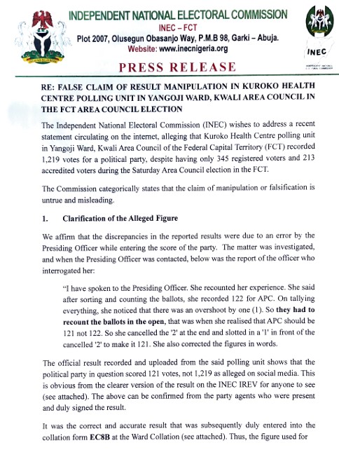 FALSE CLAIM OF RESULT MANIPULATION KUROKO HEALTH POLLING UNIT