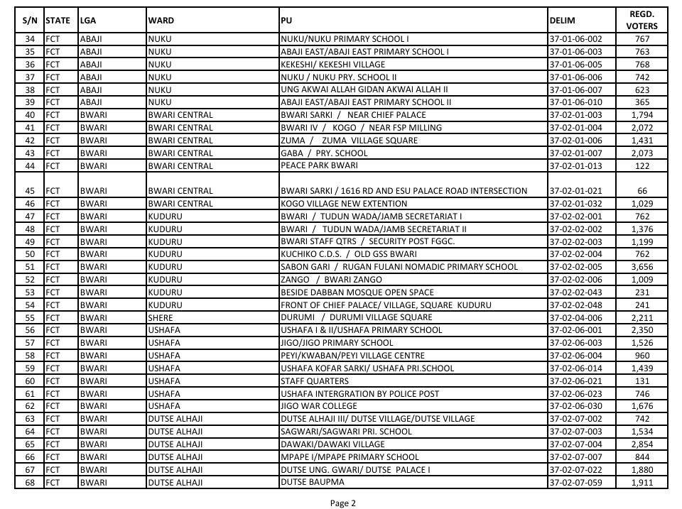 FCT AREA COUNCIL MOCK ELECTIONS HOLDS 7TH FEB, 2026 -DESIGNATED POLLING UNITS FOR THE EXERCISE