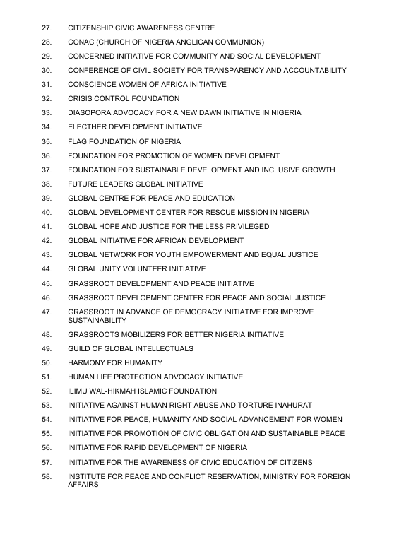 LIST OF ACCREDITED OBSERVER GROUPS FOR ANAMBRA GOVERNORSHIP ELECTION 2025